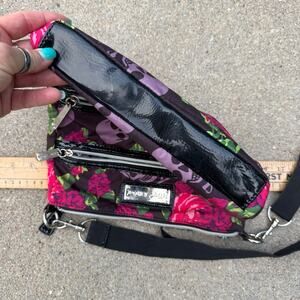 Betsy Johnson Y2K Skull and Roses Crossbody Purse Zippers Black Pink Purple