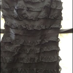 Dress is midi length. Lace is soft and does not make the dress bulky at all! Love this dress! Wore it to a wedding. Can wear with or without satin sash around waist