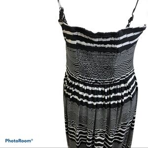 Betsy Johnson maxi ruffle spaghetti straps pattern black white dress. Size 4. Summer dress