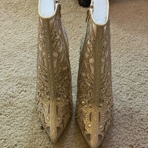 Betsy Johnson rhinestone light gold Midi heel Boots