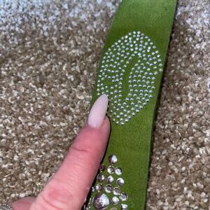 Betsy Johnson set of 2 gold green rhinestone bling lip prints studded leather Size SM