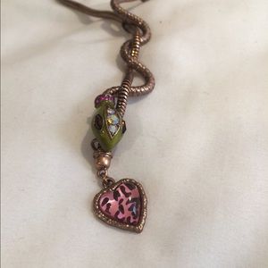 This Betsy Johnson jungle book snake necklace with a Leopard spotted heart. It's only been worn maybe two times and need a trendy new owner!
