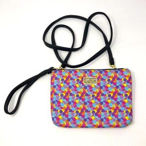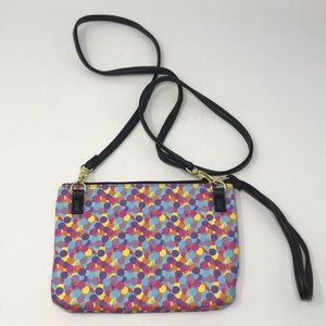 Betsy Johnson rainbow dots bag, can be a wristlet or crossbody bag.