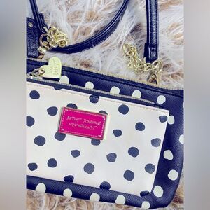 Betsy Johnson Black and Cream Polka Dot Crossbody Shoulder Bag
