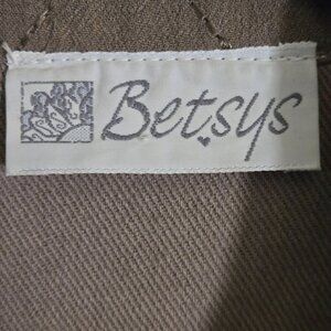 Betsy Vintage Brushed Cotton Tan Trucker Jacket Size M. Pit to pit 21", shoulder to hem 19", Made In USA, Neutral, Tencel/ Cotton Blend, Patch Breast Pockets, Button Closure. Good Pre-Owned Condition