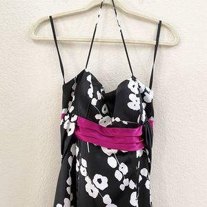 Betsy and Adam Formal Dress Size 4 Linda Bernell Black Floral Prom Halter
