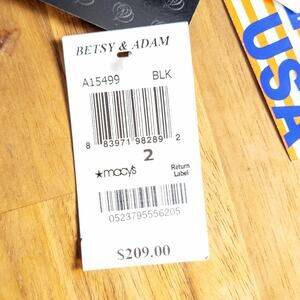 This Betsy and Adam velvet gown in black has an artful statement feel with a sheer neckline panel and smooth architectural lines through the bodice. The velvet has a rich texture that gives the dress a polished evening presence without extra weight. Size 2.