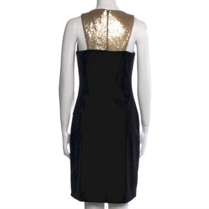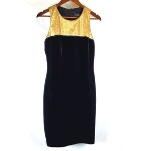 Betsy & Adam black velvet and gold sequin dress. Midi length. Sheath style. Sleeveless. Excellent condition. Size 8 Petite.