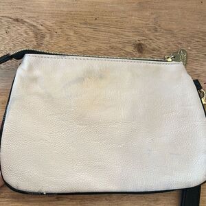 Betsy Johnson beige black polkadot bow wristlet clutch