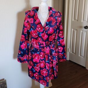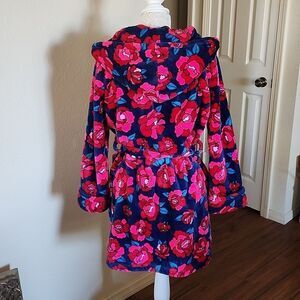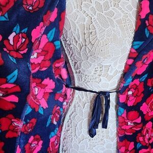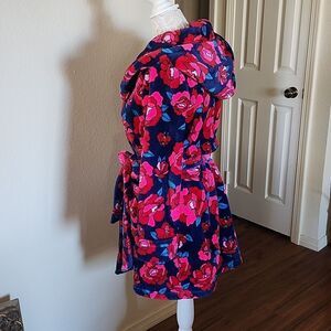 Beautiful vibrant colors, with inner tie, outer tie, two big pockets, approximately 22" pit to pit, and 32" in length. Gorgeous! C1.9001
