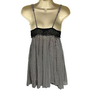 Adorable polka dot babydoll slip dress. Size medium but please see measurements below. 100% polyester. Elastic at bust. Straps are adjustable.