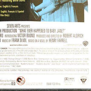 Bette Davis What Ever Happened to Baby Jane? 2 Disc Special Edition Widescreen B&W 133 minutes Bette Davis, Joan Crawford,