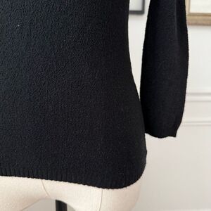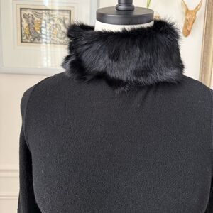 Bette Paige Black Stretchy Knit Rabbit Fur Mock Neck 3/4 Sleeve Top Sweater M