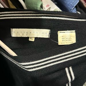Bette Paige Vintage Silk Blend Black & White Off Shoulder Sweater XL