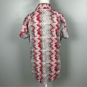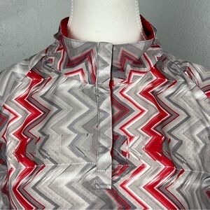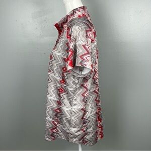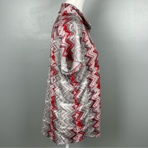 Bette and Court women’s golf top, snap button mesh vent underarm size large. Red/gray/taupe/white. Excellent condition. Approximate measurements 23” pit to pit, 27” shoulder to hem.