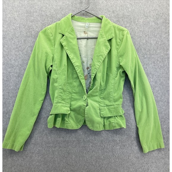 Better B. Lime Green Blazer Micro Corduroy Double Breasted Faux Pockets USA Made
