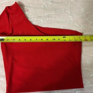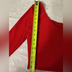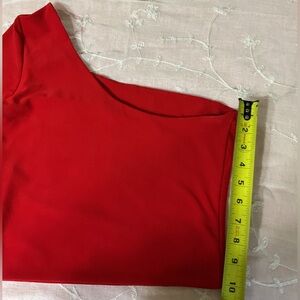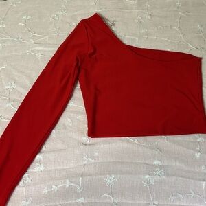 Elevate your style with this chic red one-shoulder top. Perfect for any occasion, this long sleeve design offers a bold and fashionable look.