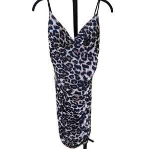 Better Be Leopard Print Ruched Bodycon Mini Dress M Adjustable Spaghetti Straps