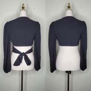 Better Be Sz S Black Chiffon Romantic Convertible Puff Sleeve Crop Top Club Bday