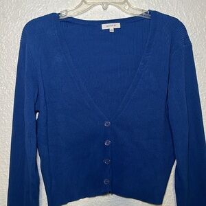 Better Be blue ribbed button front V-neck cardigan size 3XL