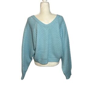 Better Be light blue chunky knit cropped v-neck sweater - L
