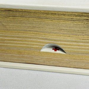 Book has wear from storage and age. It is an acceptable condition. The edges and corners have rubbings, wears, and the sleeve has small tears. The book is in good condition with a few pages that are wrinkled in the back. Please see pictures for all details.