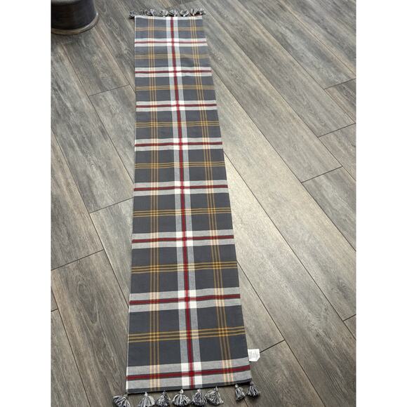 Better Homes And Gardens Plaid Table Runner Gray Rectangle Cotton 74” Tassel