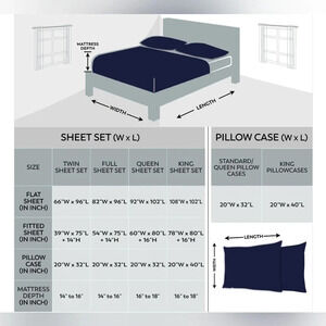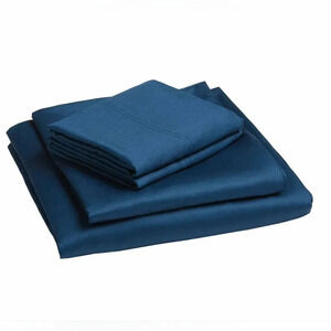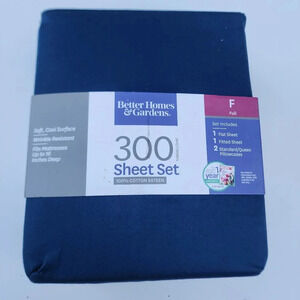 Better Homes & Gardens 300 Thread Count Navy Cotton Sateen Bed Sheet Set, Full