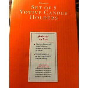 Better Homes & Gardens 5 Poinsettia Glass Votive Candle Holders Christmas Decor