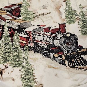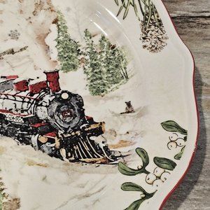 Better Homes Gardens Heritage Winter Forest TRAIN Steam Engine 9" Plate Cream