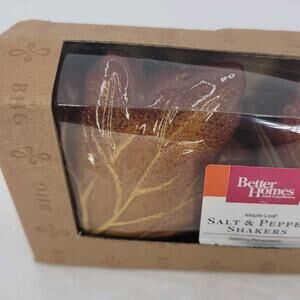 Better Homes & Gardens Maple Leaf Earthenware Salt & Pepper Shaker Set NIB