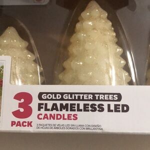 Better Homes and Gardens 3pack gold glitter trees flameless LED candles new
