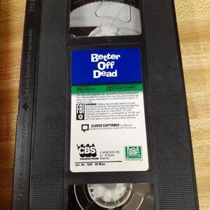 This VHS tape features the 1985 comedy film "Better Off Dead" starring John Cusack, Amanda Wyss, and Curtis Armstrong. The movie is presented in NTSC signal standard and has a PG rating. It is not a former rental and is from the 20th Century Fox studio. The film has a dark humor sub-genre and features English language audio. The director of the movie is Steve Holland and the title is "Better Off Dead". This VHS tape is a great addition to any comedy or John Cusack fan's collection.