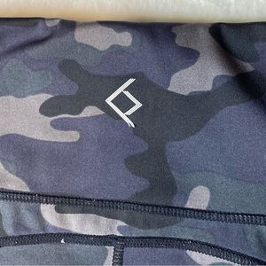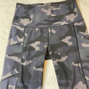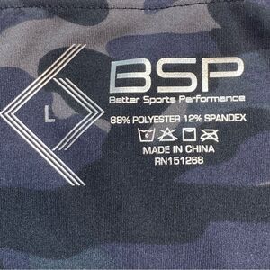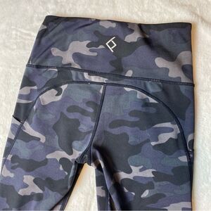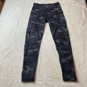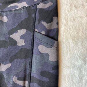 Better Sports Performance Blue Tone Camo Leggings Size Large. Great used condition. 2 side slip pockets. One small run left front thigh as seen in photo. Measures waist 26", inseam 26.5", rise 10".