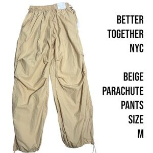Better Together NYC Beige Cream Parachute Joggers Size Medium y2k retro
