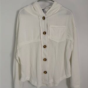 Better Together White Waffle Knit Button Hoodie | XS NWT
