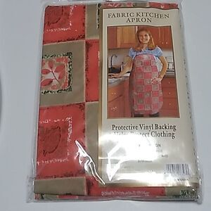 Pre-owned in new unused condition. Fabric Kitchen Apron with Protective Vinyl Backing Size 20x30.