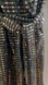 Textured metallic gold circles, squares, and sparkly glitter create an eye-catching pattern across this stunning stretch knit romper with a plunging surplice neckline and long sleeves with puff shoulders. Elastic waist, with tying sash belt, sits atop flirty high-rise shorts. Back keyhole with top button.