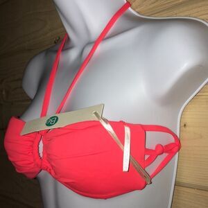 Bettinis Solids Bandeau Bikini Top Neon Flame nwt