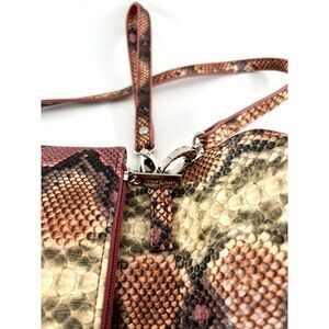 Betty Barclay Faux Snake Skin Crossbody Bag with Wristlet Handle Pink Tan Green