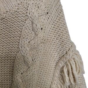Betty Betty Women’s SZ Large, Firenze Made In Italy, Light Tan, Poncho/Sweater. 30% Wool, 10% Alpaca Wool, 50% Acrlic and 10% Viscose. Lenght is 30". Sleeveless. Mock Turtleneck. Chunky Cable Knit. Good Pre-Owned Condition. See Pics for Details. No Stains or Holes. Smoke Free Environment.