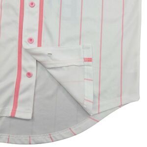 Betty Boop Baseball Jersey Womens Medium Pink White Button Up Striped Retro Novelty