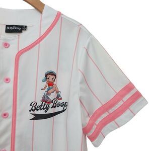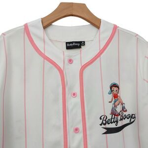 Betty Boop Baseball Jersey Womens Medium Pink White Button Up Retro Novelty