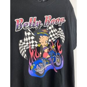 Betty Boop Biker Pinup Oversized Graphic Tee, Black - Size L