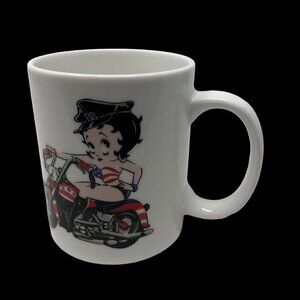 Betty Boop Coffee Mug Motorcycle Bike White Ceramic Red White Blue Cup Patriotic