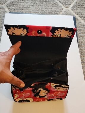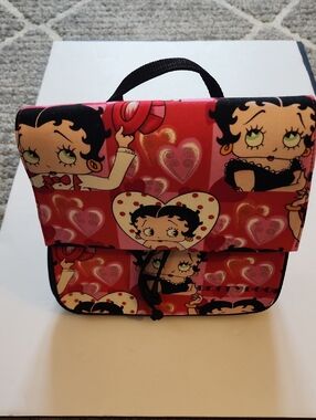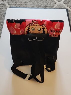 NWOT. Betty Boop Drawstring Backpack. Playful Betty Boop print on a compact crossbody. Heart motifs and character panels for a fun look. Top handle and flap closure for easy access. Ideal for casual outings and fans of the character.