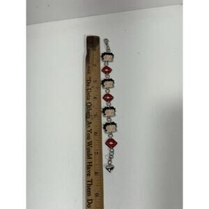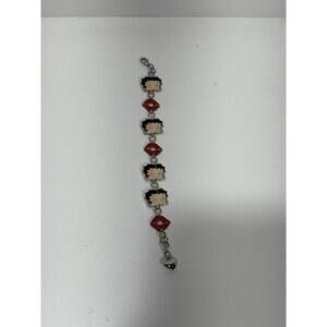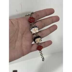 Betty Boop Enamel Silver Link Bracelet Vintage 7+ inch KFS/FS