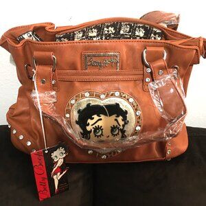 Betty Boop Faux Leather Brown Handbag - Fabric Lining NWT