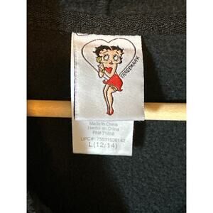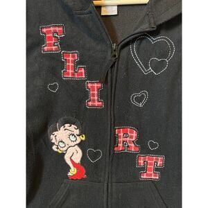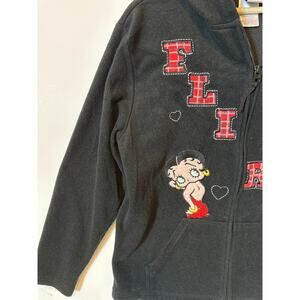 Betty Boop Flirt Black Fleece Hoodie Zip Up Sweatshirt Y2K Cartoon Women's Sz L