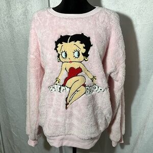 Betty Boop Fuzzy Pink Sweatshirt Women’s M Plush Crewneck Cozy Retro Cartoon